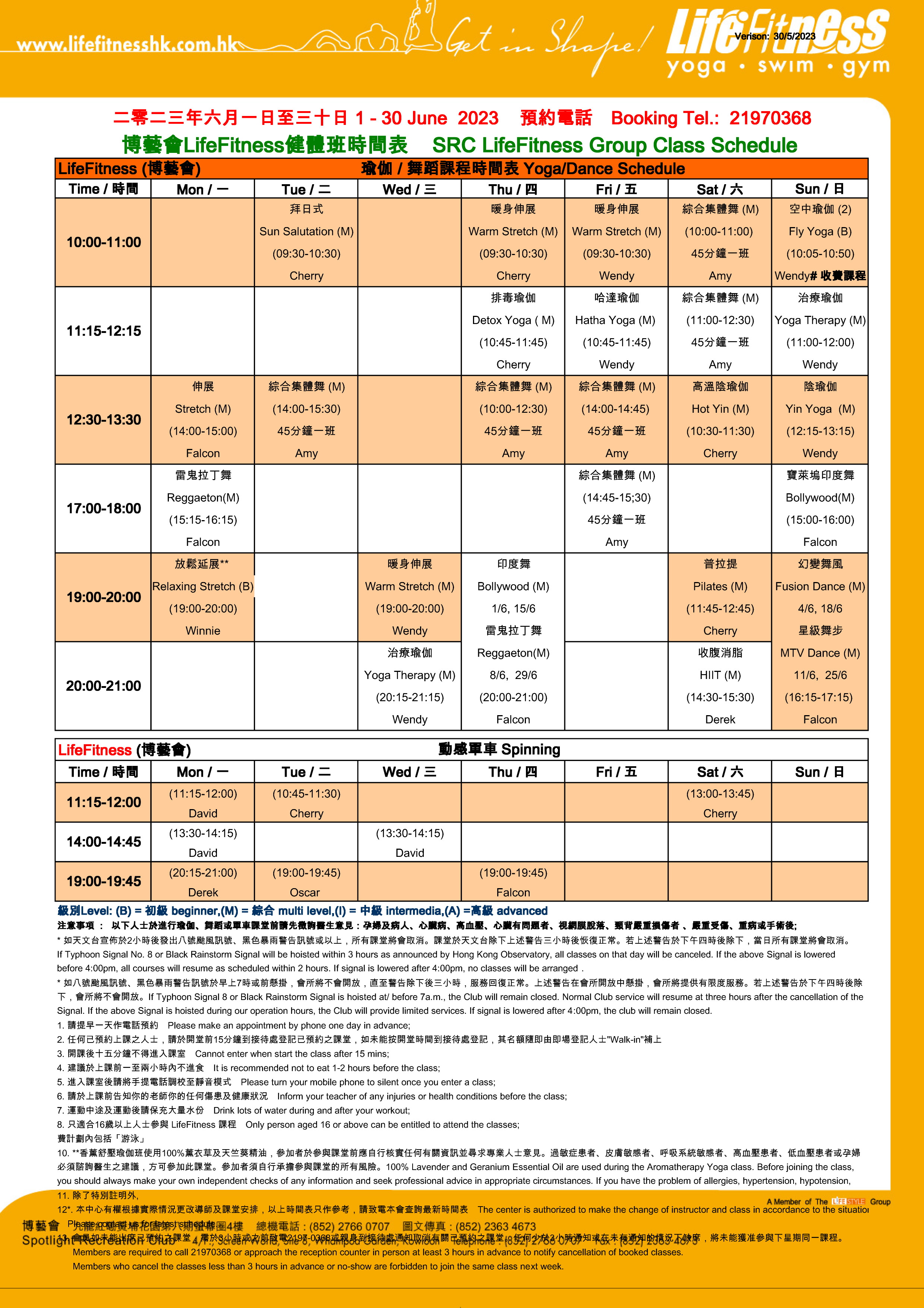 注意事項 : 以下人士於進行瑜伽、舞蹈或單車課堂前請先徵詢醫生意見: